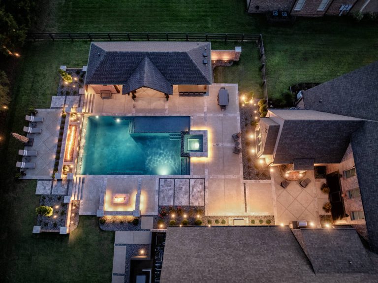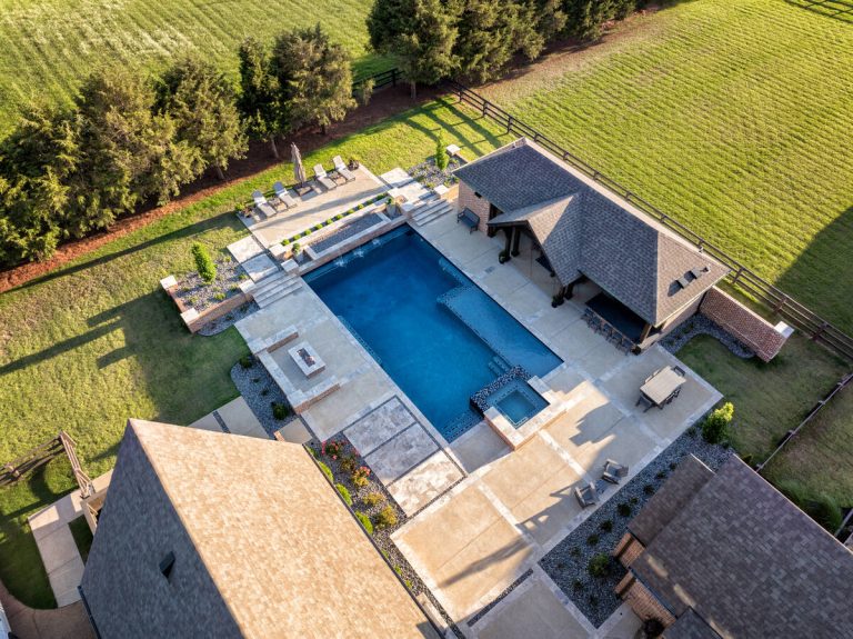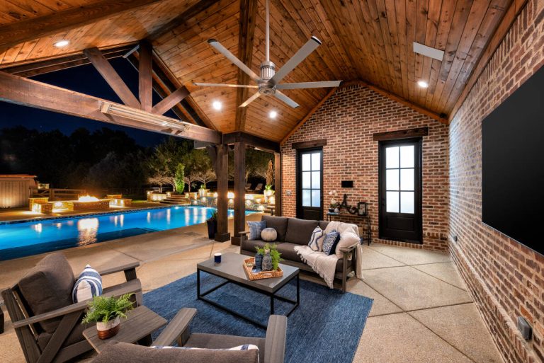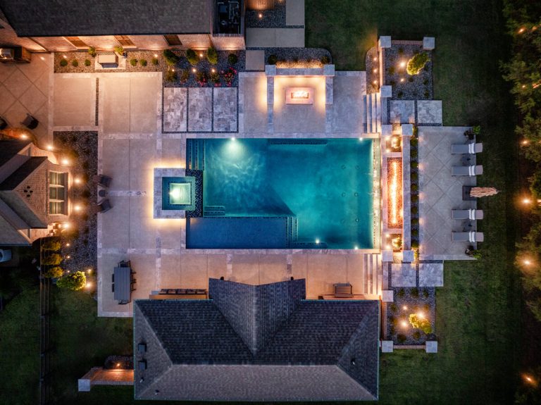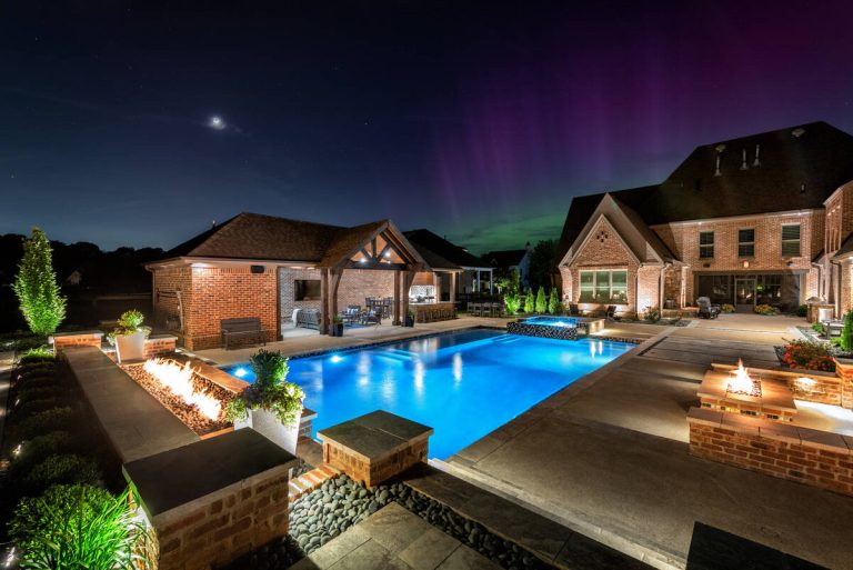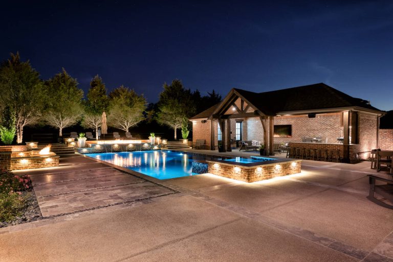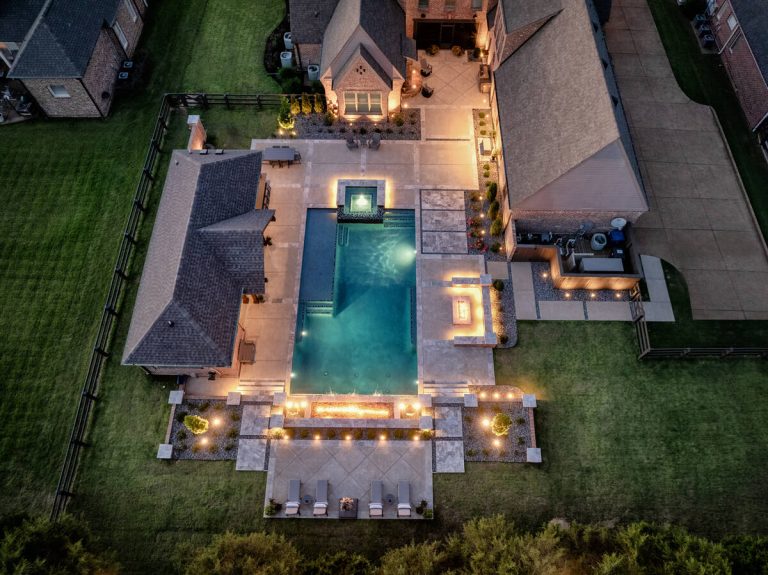 The Accardo project is the pinnacle of resort-style living, blending luxury, craftsmanship, and entertainment into one breathtaking outdoor space. The custom pool and spa feature a shimmering pebble and glass bead plaster finish, accented with handcrafted Lightstreams glass tile that catches the sunlight from every angle. Multiple sheer descent water features cascade along the back edge, while fire features and a dedicated fire pit create a stunning balance of water and flame. A spacious pool house, complete with storage and a full bathroom, offers convenience and comfort just steps from the water. Designed with the grill master in mind, the outdoor kitchen is fully equipped for culinary gatherings, making this backyard an unrivaled retreat for both relaxation and celebration.