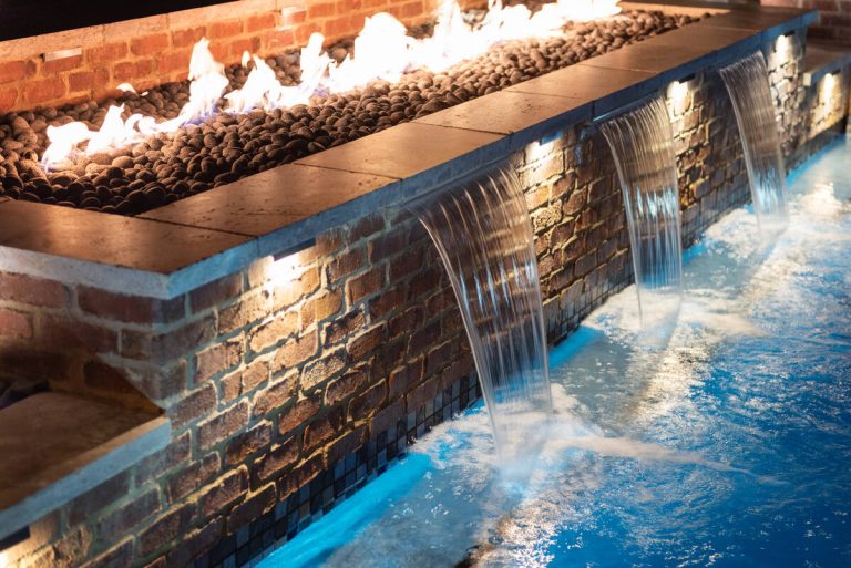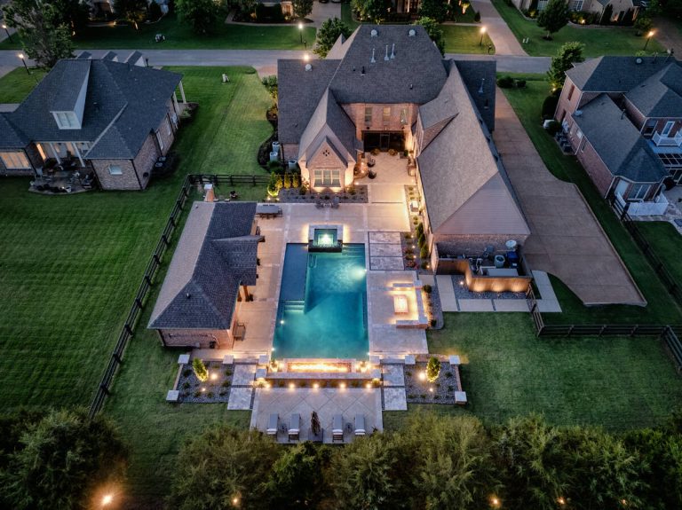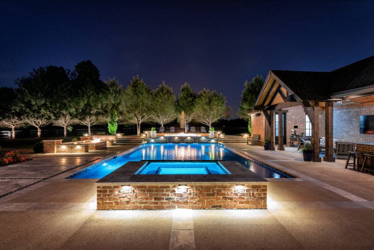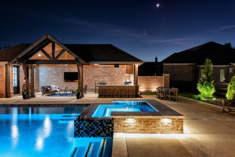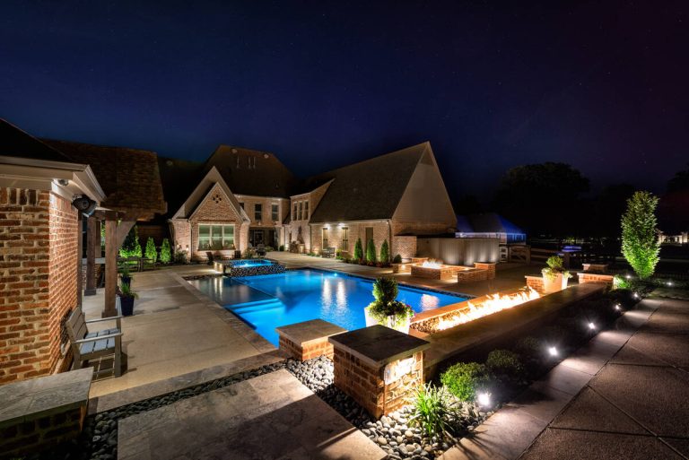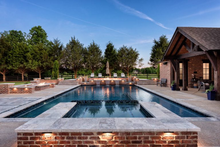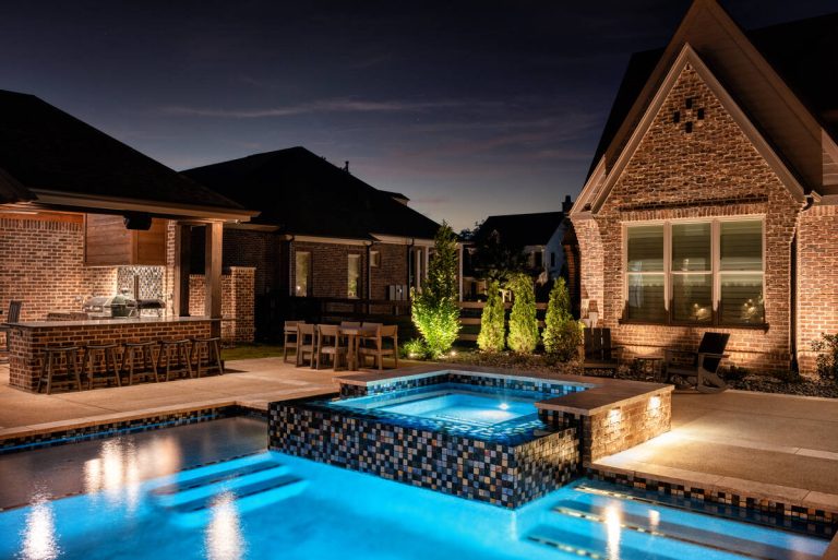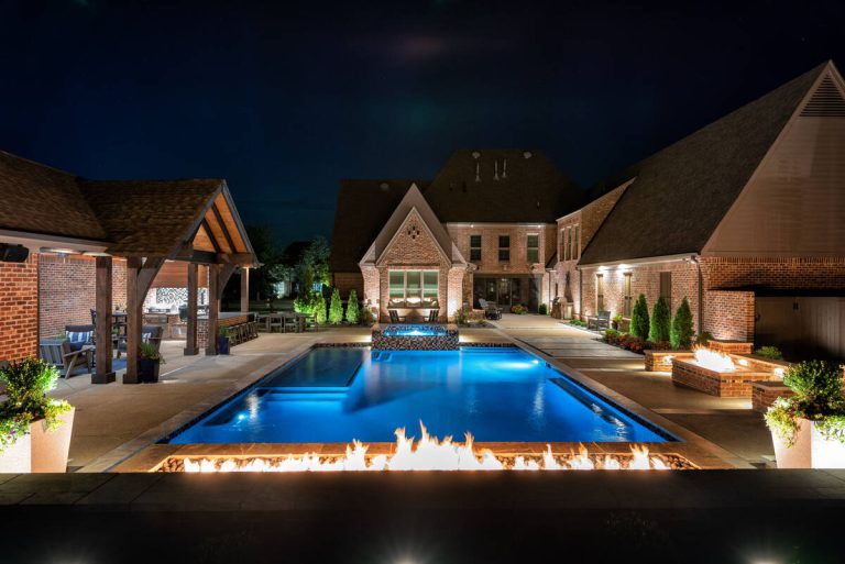 The Accardo project is the pinnacle of resort-style living, blending luxury, craftsmanship, and entertainment into one breathtaking outdoor space. The custom pool and spa feature a shimmering pebble and glass bead plaster finish, accented with handcrafted Lightstreams glass tile that catches the sunlight from every angle. Multiple sheer descent water features cascade along the back edge, while fire features and a dedicated fire pit create a stunning balance of water and flame. A spacious pool house, complete with storage and a full bathroom, offers convenience and comfort just steps from the water. Designed with the grill master in mind, the outdoor kitchen is fully equipped for culinary gatherings, making this backyard an unrivaled retreat for both relaxation and celebration.