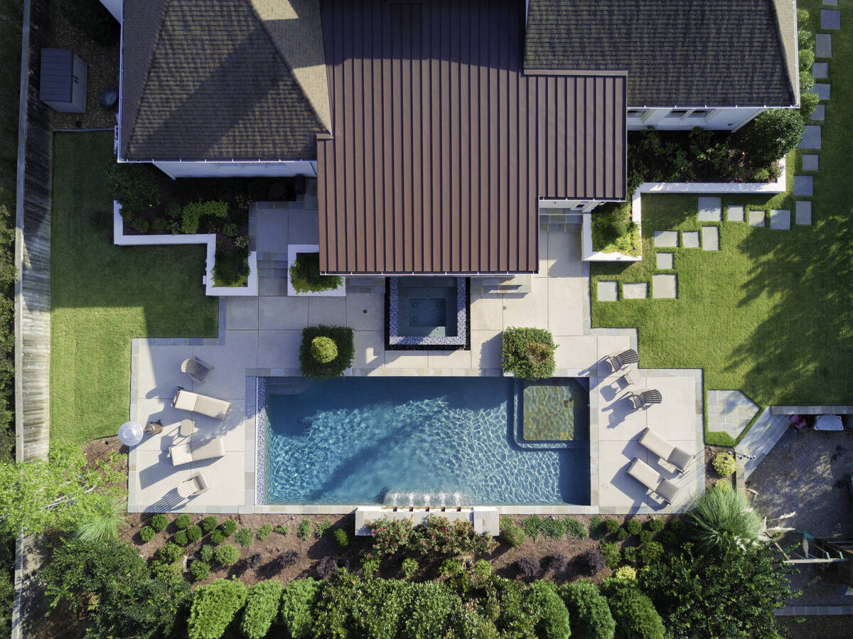 The Puryear project blends elegance and functionality in a complete backyard transformation. A custom gunite pool with a PebbleTec plaster finish offers lasting beauty and a natural, textured look, complemented by a raised spa for year-round relaxation. Copper scuppers provide a gentle, soothing water flow, while the washed limestone aggregate decking delivers a durable and stylish surface underfoot. An automatic pool cover ensures safety and convenience, extending the life of the pool with minimal maintenance. The space is anchored by a covered patio addition, creating a comfortable outdoor living area that’s perfect for dining, lounging, and entertaining. Every detail is designed for both visual impact and long-term enjoyment.