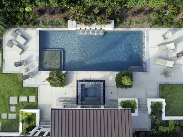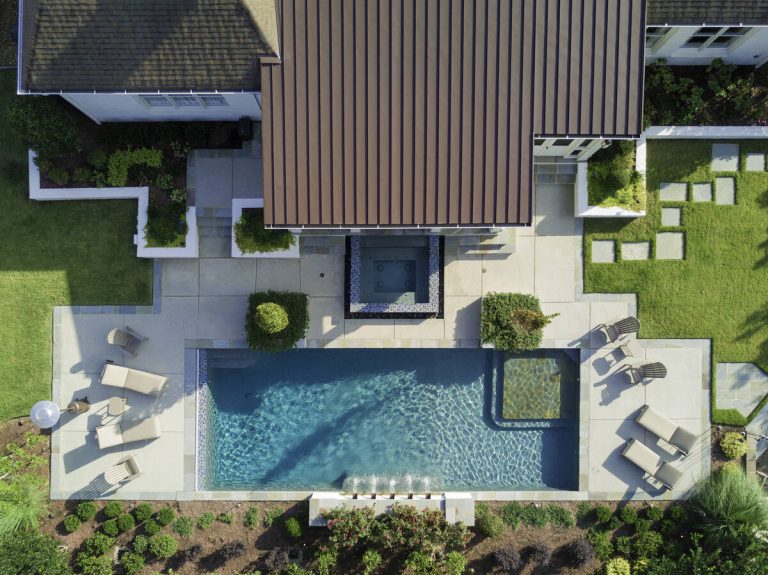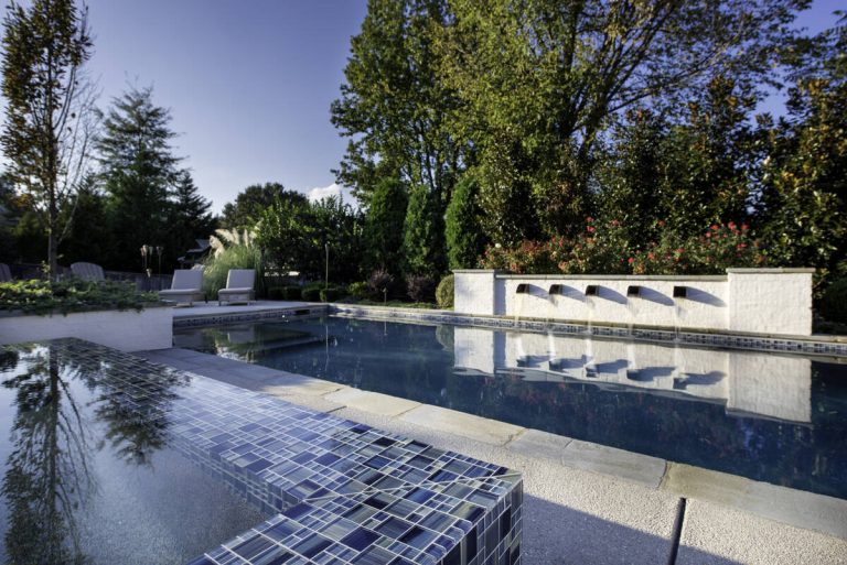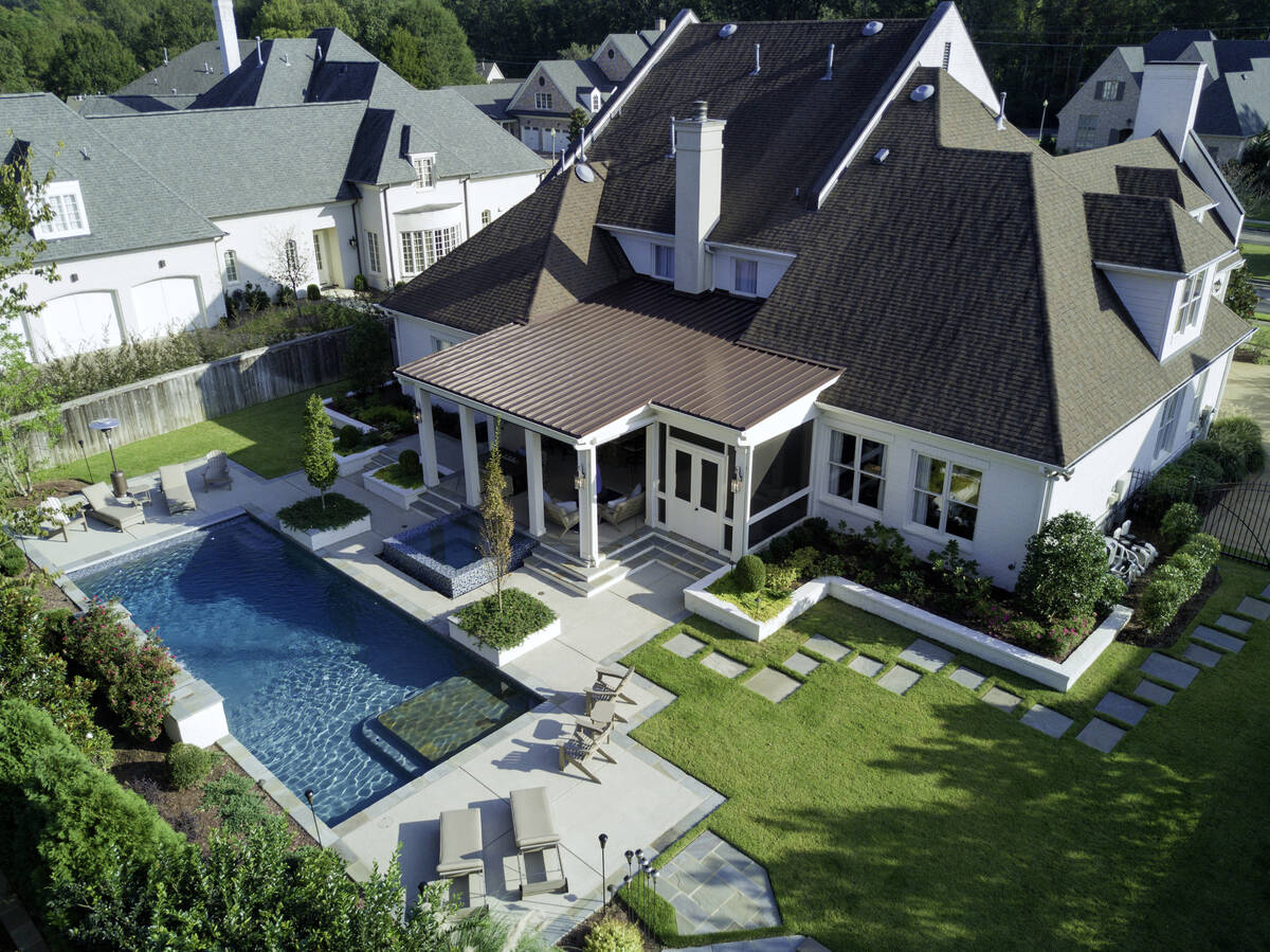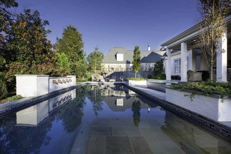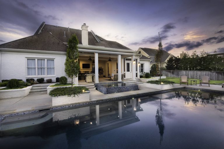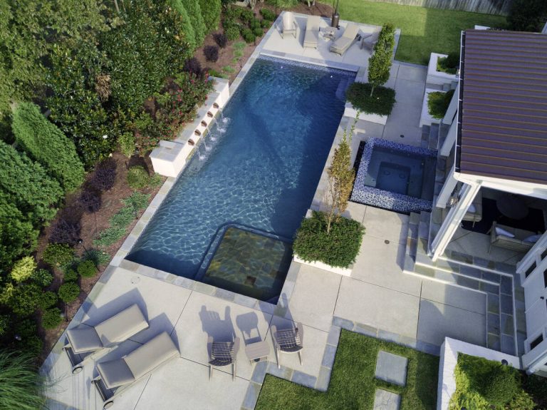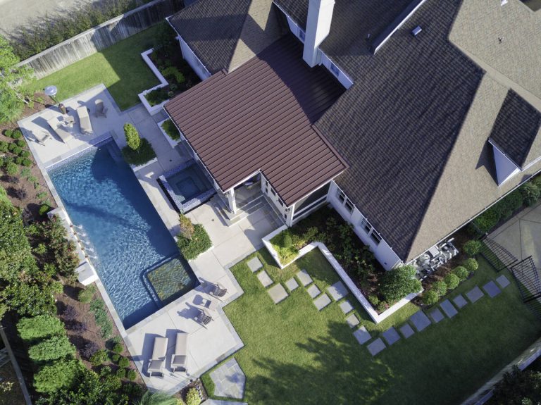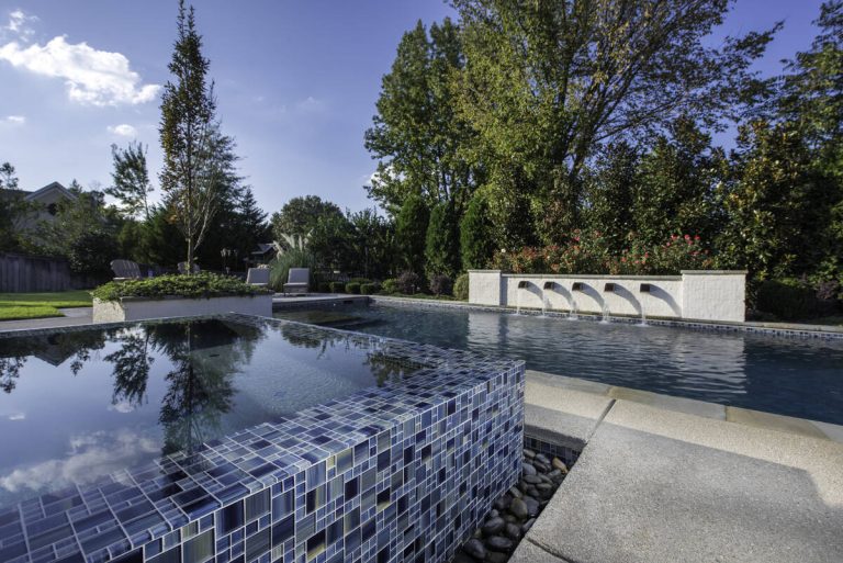 The Puryear project blends elegance and functionality in a complete backyard transformation. A custom gunite pool with a PebbleTec plaster finish offers lasting beauty and a natural, textured look, complemented by a raised spa for year-round relaxation. Copper scuppers provide a gentle, soothing water flow, while the washed limestone aggregate decking delivers a durable and stylish surface underfoot. An automatic pool cover ensures safety and convenience, extending the life of the pool with minimal maintenance. The space is anchored by a covered patio addition, creating a comfortable outdoor living area that’s perfect for dining, lounging, and entertaining. Every detail is designed for both visual impact and long-term enjoyment.